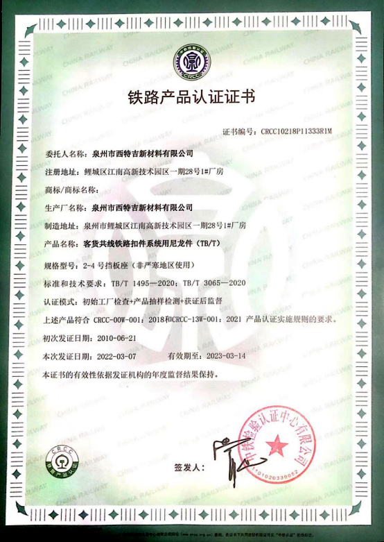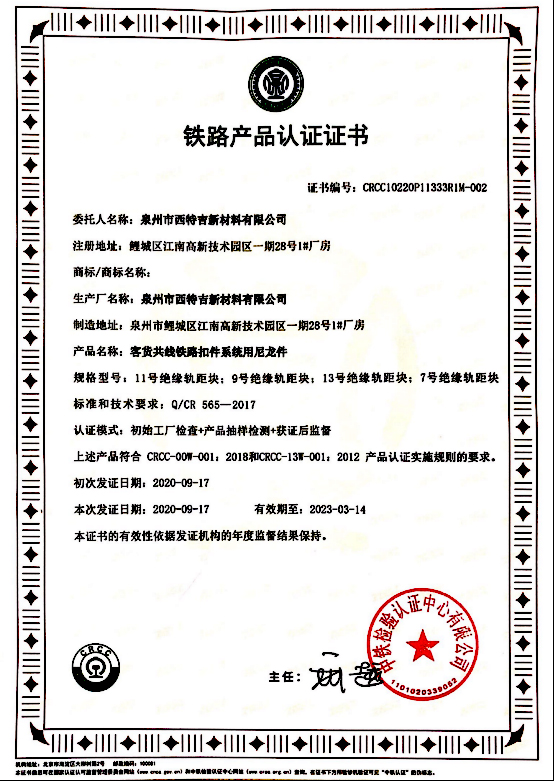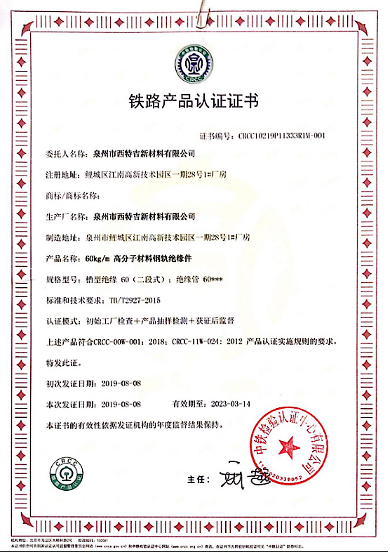 鐵路產(chǎn)品認(rèn)證證書(shū)